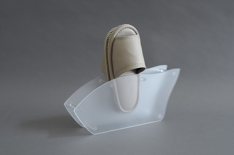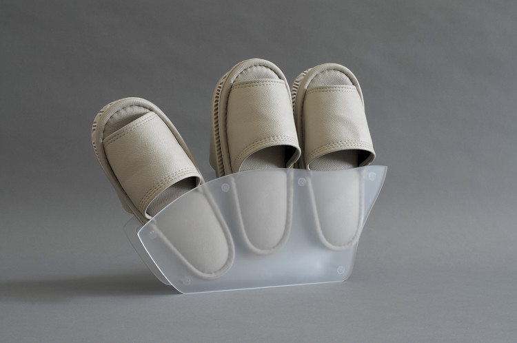 SR-f スリッパを3足収納できるスリッパラックです。アクリルマットによる上品な質感が、玄関まわりの雰囲気を高めます。このスリッパラックは半透明のため、むやみに自己主張せずに、静かにたたずんでいます。スリッパを収納する時の重ね方と、スリッパを収納している時の造形も美しく、スリッパを収納していないときにも、人々のこころに潤いを与える美しい造形をもったスリッパラックです。 価格 5000円(在庫限り) info@makira.jp まで